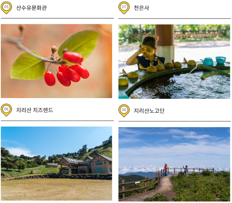 2일 : 산수유문화관 >> 지리산 치즈랜드 >> 천은사 >> 지리산노고단