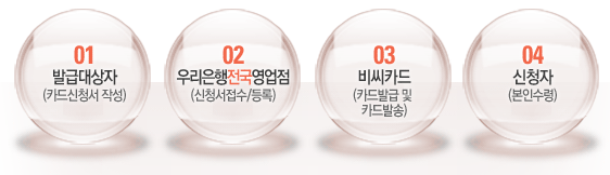 | 카드가입신청서 | 거주지에서 가까운 우리은행 영업점에 비치 | |