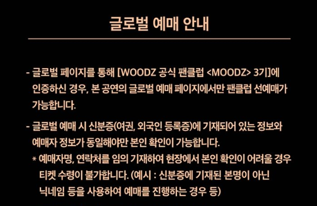 팬클럽 선예매는 별도의 인증 절차를 거쳐야 합니다. 인증 기간 내에 팬클럽 회원임을 인증한 멜론티켓 아이디로만 선예매가 가능하니 반드시 인증 기간을 확인하시기 바랍니다. 선예매 시 회차별 1인 1매까지 구매가 가능하며 일반 예매를 포함해 총 회차별 1인 2매까지 구매할 수 있습니다.