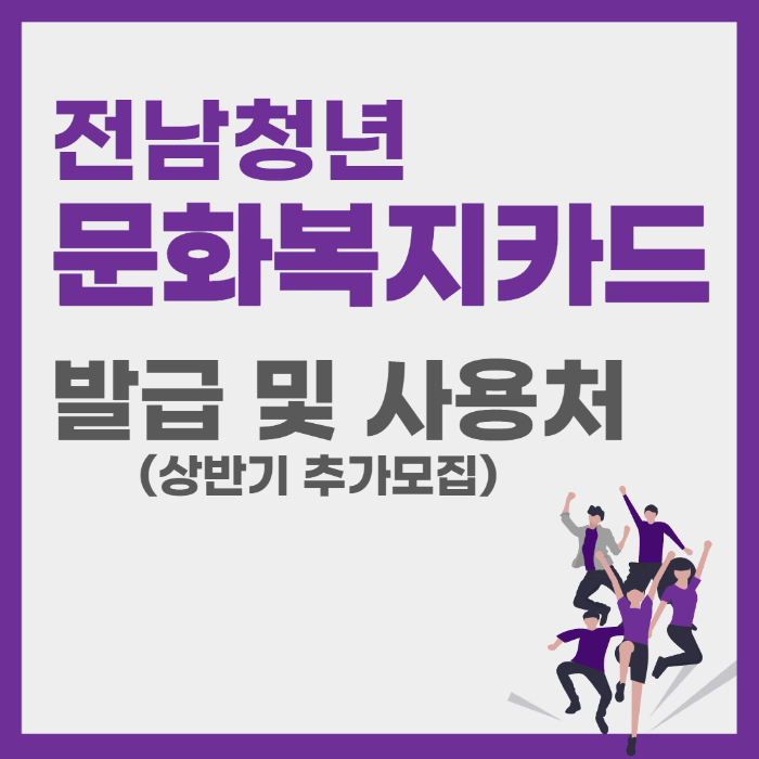 전남청년 문화복지카드를 추가로 신청받고 있습니다.전남 도내에 2년이상 거주중인 청년에게 연 20만원의 문화,공연관람,학원수강,도서구매등 복지를 지원해주는 정책입니다.지금부터 발급방법과 사용처에 대해 자세히 포스팅해보겠습니다.