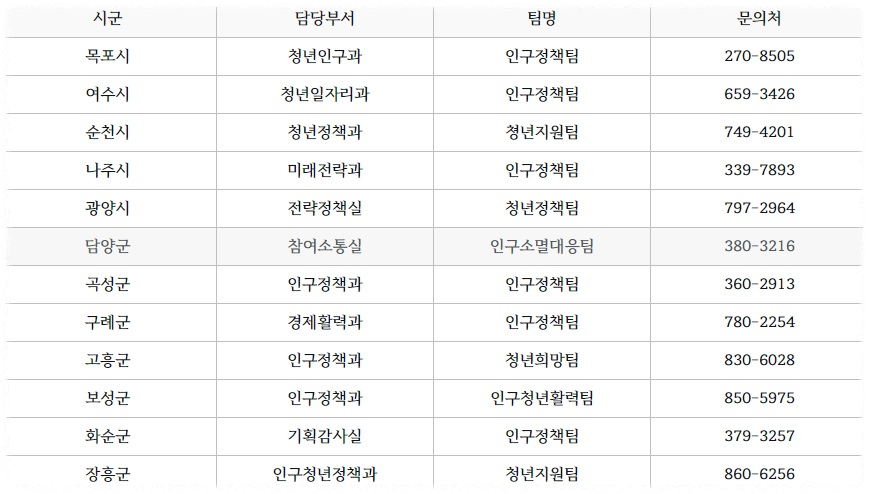 전남청년 문화복지카드 문의처