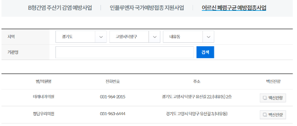 - 예방접종도우미 누리집 병원확인 방법
