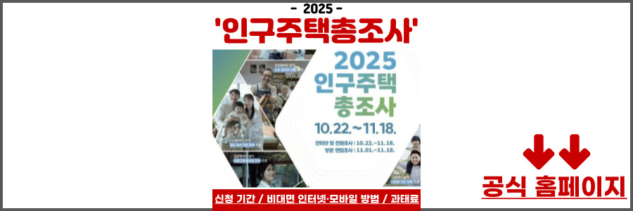 2025년 인구주택총조사가 시작되었습니다. 올해는 1925년 첫 조사 이후 정확히 100년을 맞이하는 의미 있는 해로, 대한민국의 미래 100년을 준비하는 중요한 조사입니다. 5년마다 실시되는 이 조사는 국가 정책 수립의 기초자료가 되며, 복지·주거·돌봄 정책 등 우리 삶과 직결된 다양한 분야에 활용됩니다. 표본 가구로 선정되신 분들은 조사 기간을 놓치지 마시고, 이 글을 통해 조사 기간부터 비대면 인터넷·모바일 신청방법, 과태료 그리고 홈페이지까지 한눈에 확인하시기 바랍니다.